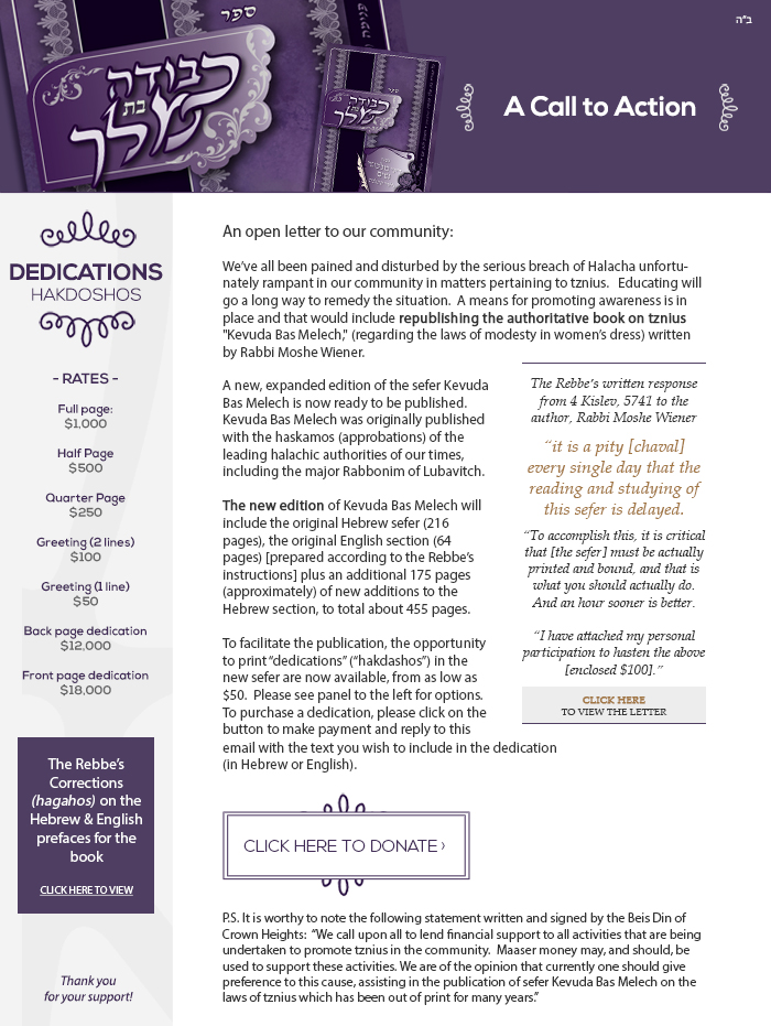 P.S. To view an on-line copy of the original edition of sefer Kvuda Bas Melech (Hebrew section), please see: